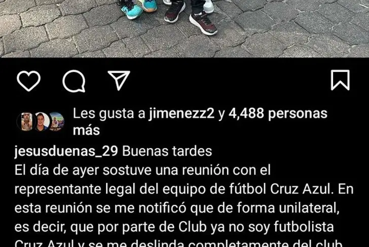 “El día de ayer sostuve una reunión con el representante legal del equipo fútbol Cruz Azul en esta reunión se me notificó que dé forma unilateral, es decir que por parte de club ya no soy futbolista de Cruz Azul y se me deslinda completamente del Club. El abogado arbitrariamente a través de un documento buscó que firmara para recibir solo la mitad de lo que falta en mi contrato, Por obvias razones, no acepté. De igual forma, se hizo de mi conocimiento que todo esto llegaría a la liga, Solo me queda agradecer en nombre de mis hijos y de un servidor el apoyo que me brindaron durante el proceso de esta situación. Así mismo agradecido con Cruz Azul Por la oportunidad de vestir esta camiseta durante estos seis meses. Ahora todo queda en manos de Dios”, señaló.